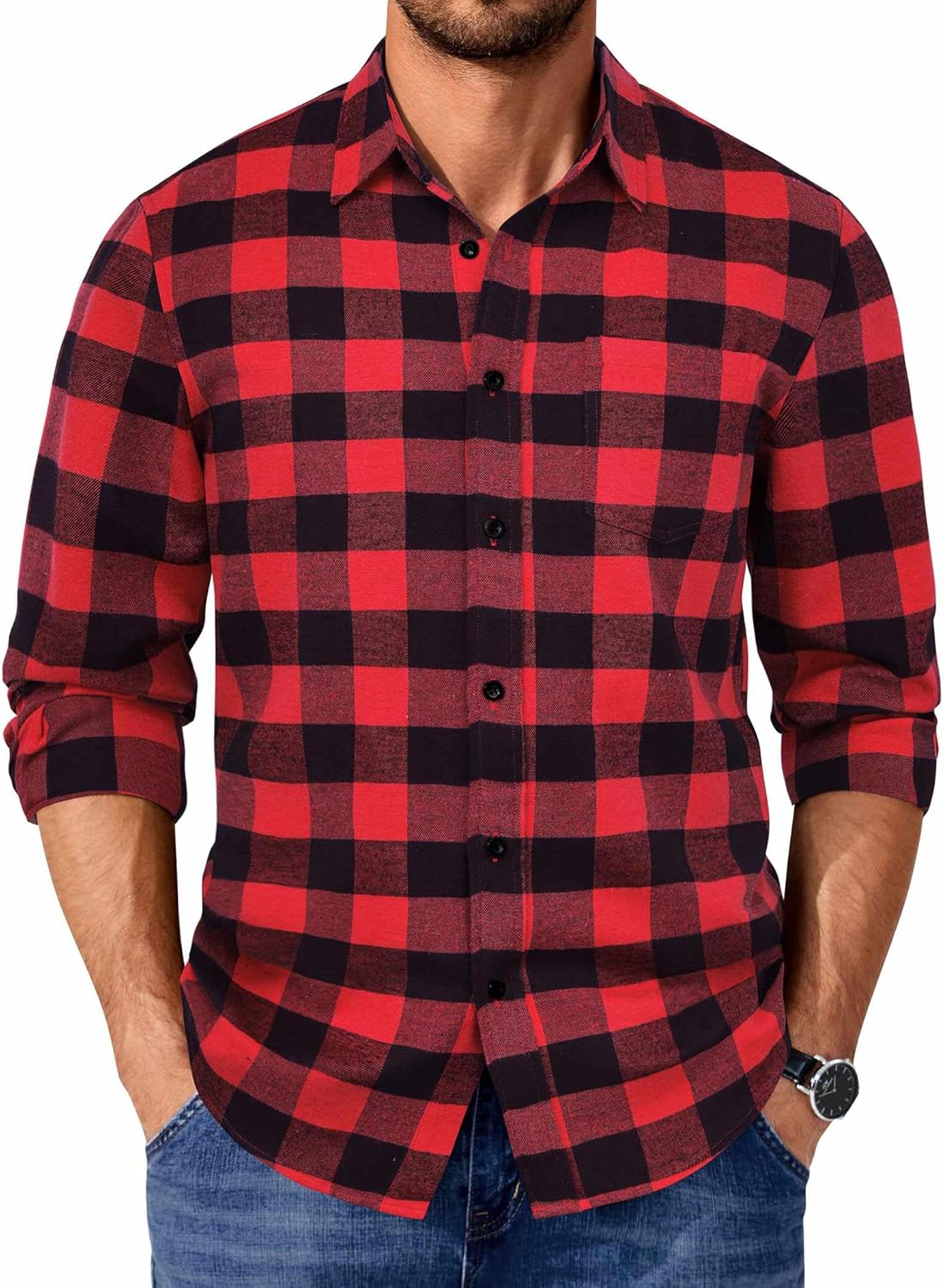 COOFANDY Mens Flannel Shirts Long Sleeve Casual Plaid Shirt for Men Button Up Shirt Jackets with Pocket