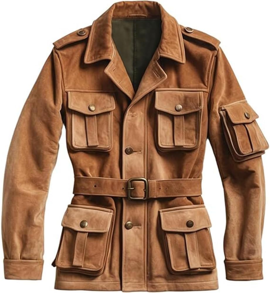 J'Jackin Men's Classic Style Suede Safari Field Jacket - Premium Brown Soft Suede Leather Jackets for Men