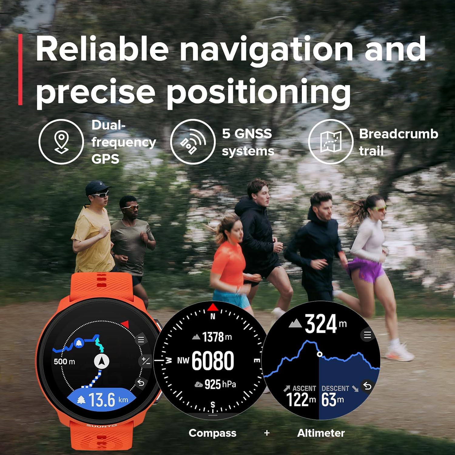 Dual-band GPS Tracking - Keeping the superior tracking accuracy with dual bands GPS tracking and navigation, the SUUNTO Run GPS running watch is capable of tracking and recording your trail and track percisely and accurately, no matter in the cities, countryside and complex outdoors