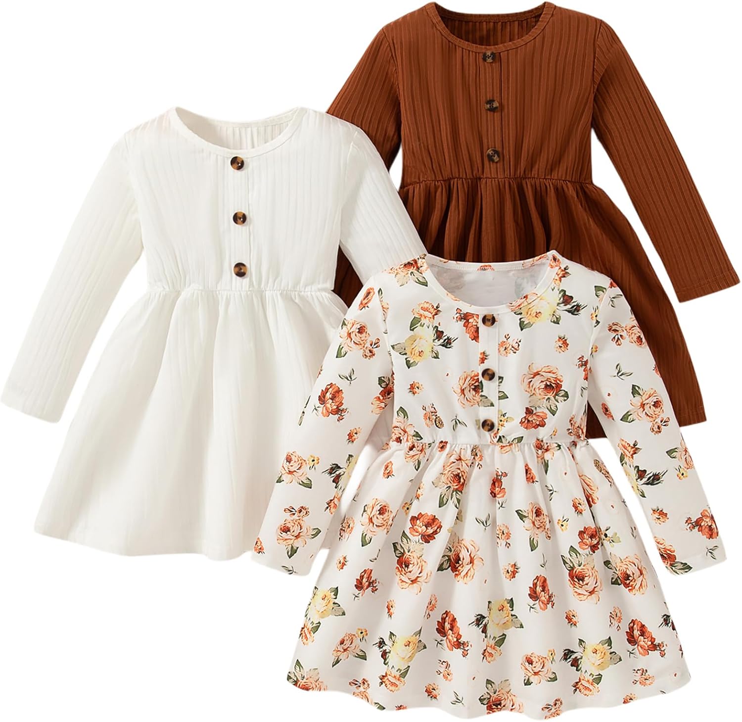 Girls Dresses Toddler Girls Dress 3-Pack Casual Party Print Skater A-line Dress Sundress