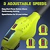 3 VARIABLE SPEEDS: This battery leaf blower features an adjustable speed button for versatile use. Level 1 (90 MPH) clears dust and debris, Level 2 (120 MPH) sweeps leaves and grass, and Level 3 (150 MPH) handles fluffy snow and heavy leaves. Includes an extension tube for precise, hard-to-reach areas cleaning.
