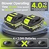 SUFFICIENT BATTERY RUNTIME: Electric blower comes with a fast charger and TWO 4000mAh battery, providing up to 30-60 mins of runtime on different speeds. The rechargeable battery ensures uninterrupted use while you are away from power sources. Overheat protection keeps the battery always safe to use.
