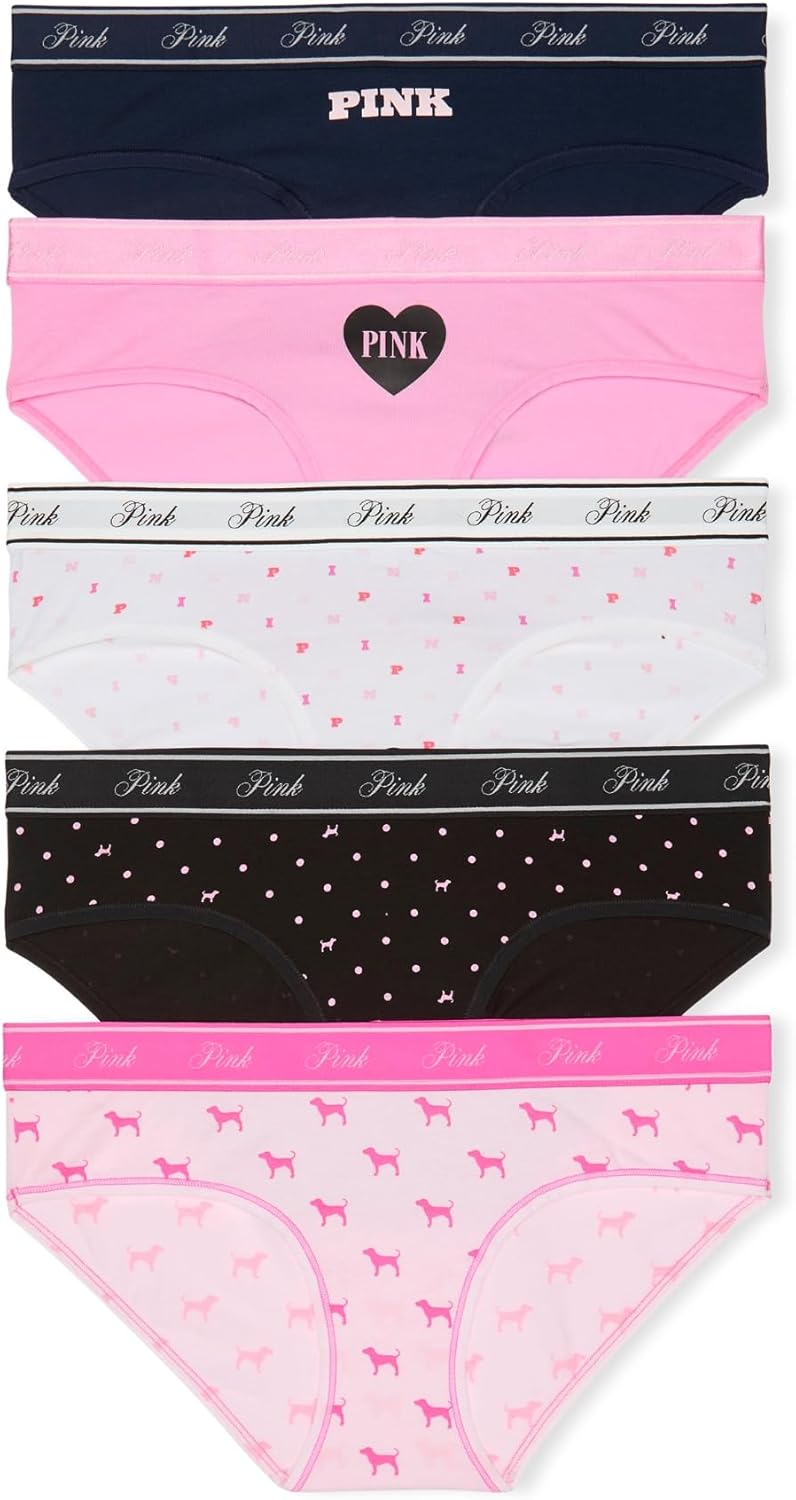 Victoria's Secret PINK Women's Cotton Logo Hipster Underwear, Moderate Coverage Panties for Women, Multi Pack (XS-XXL)