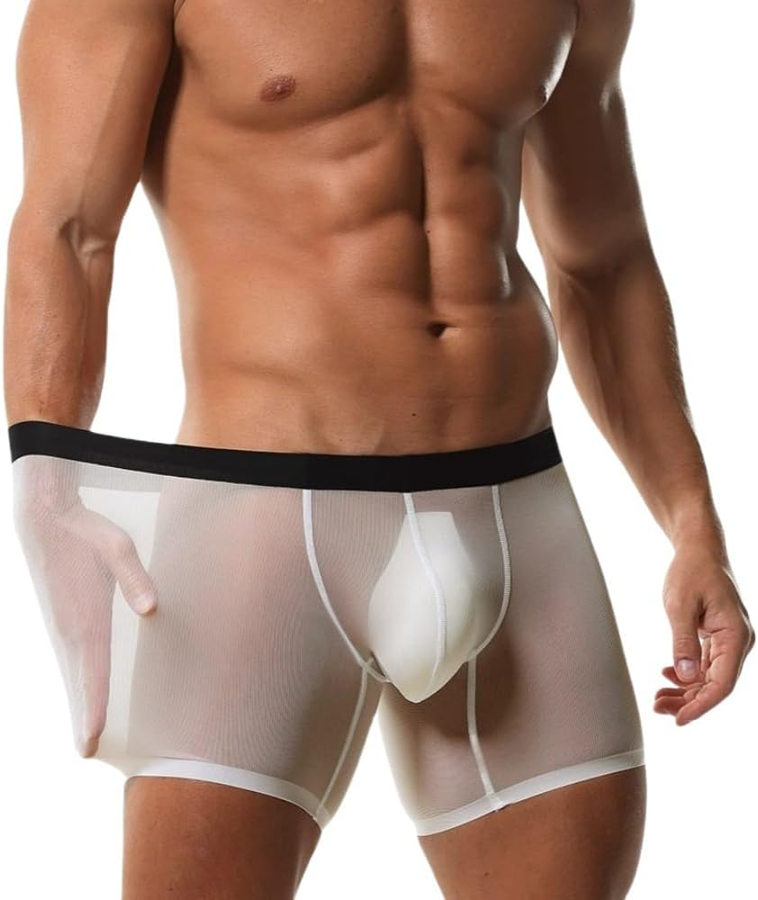Mens Mesh Underwear Ice Silk Boxer Brief Male See Through Underpants Cooling Extended Protect Crotch Sport Shorts