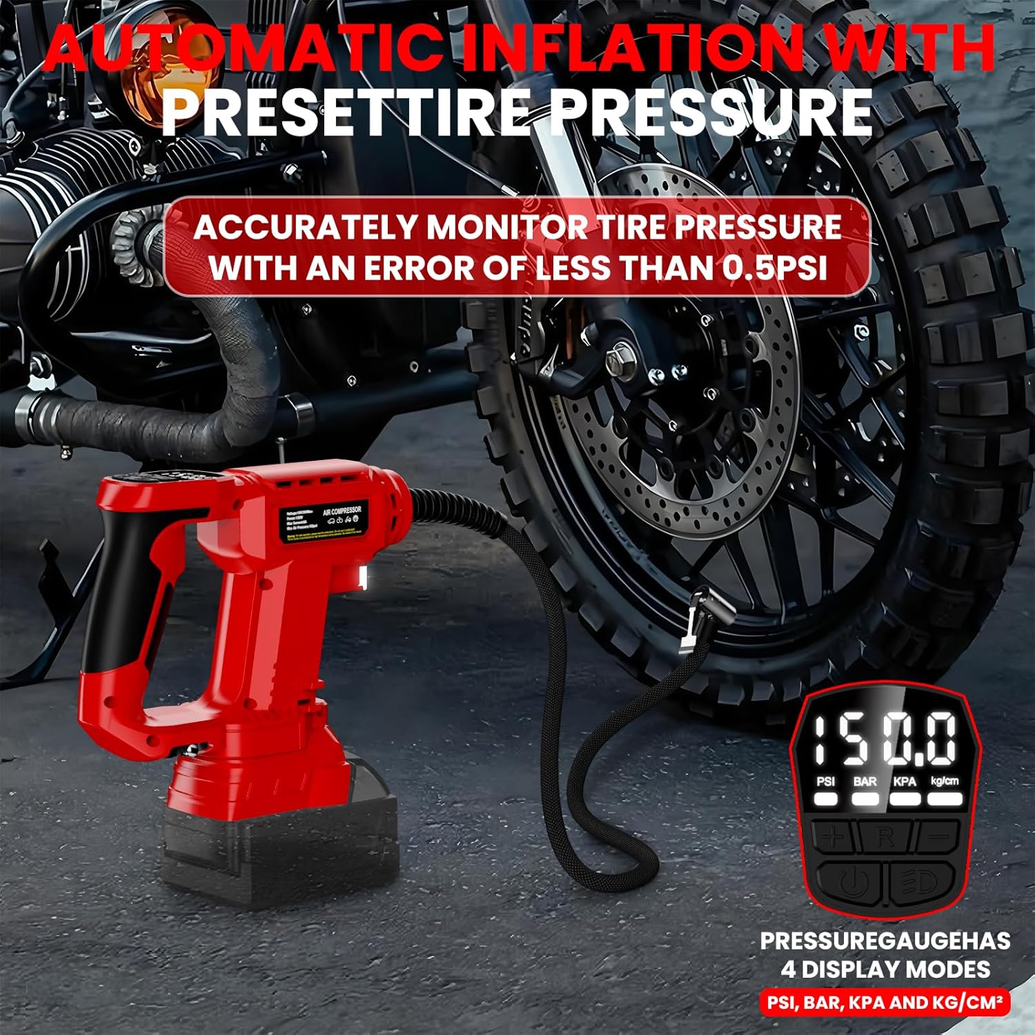 Cordless Tire Inflator Air Compressor for Milwaukee 18V Battery, 150PSI Portable LED Light Handheld Air Pump with Digital Pressure Gauge for Cars, Motorcycles, Bikes, Sport Balls(Only Tools)