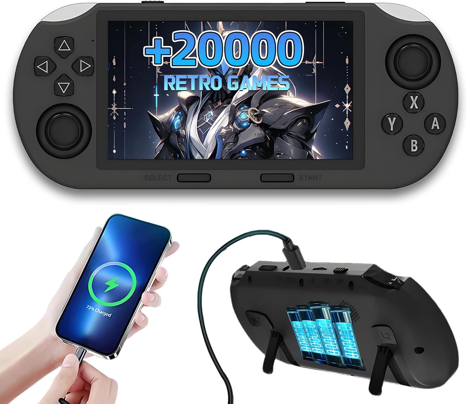 All-in-One Console for Leisure & Entertainment: This handheld console supports the emergency mobile phone charging function, instantly turning into a power bank when your battery is low during travel. Meanwhile, it supports high-definition video playback and is compatible with a variety of mainstream formats, enabling you to enjoy popular shows at will. It also integrates photo album browsing/e-book reading/music playback features to meet your various leisure needs. It is worth mentioning that it supports a two-player game mode, so you can always invite friends or family members to play games