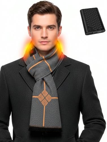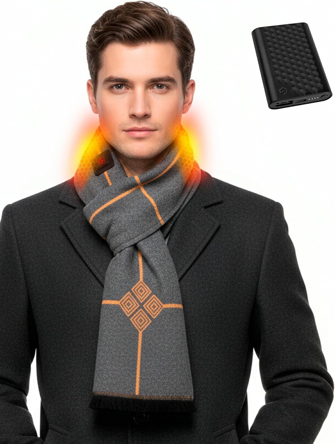 Genovega Graphene Heated Scarf for Women Men Rechargeable Pack Electric Neck Heating Shawl Pad Accessory Winter Must Have Gift Grey Brown