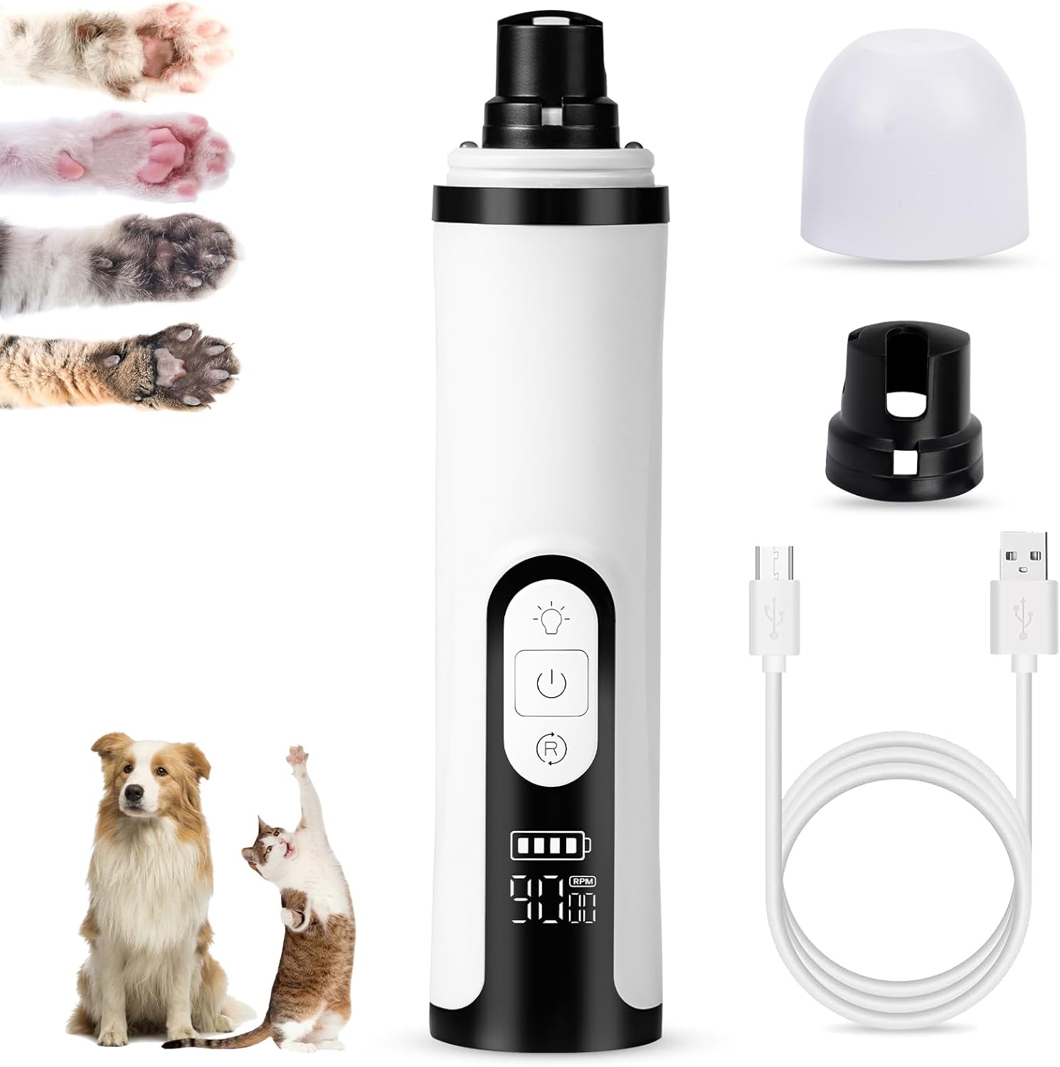 Pet Nail Grinder for Dogs and Cats - Super Quiet and Low Vibration Electric Dog Nail Grinder with 2 LED Lights - USB Rechargeable and Cordless - 3 Speeds - Small to Large Pets (White)