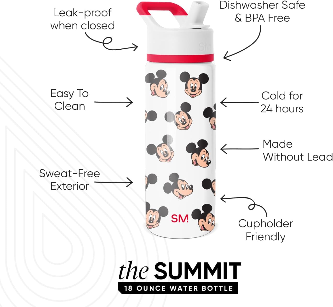 Simple Modern Kids Summit Water Bottle with Straw Lid | Disney Mickey Mouse 18oz Stainless Steel Cup Insulated Tumbler for Boys, Girls, School | Mickey Mouse Fun