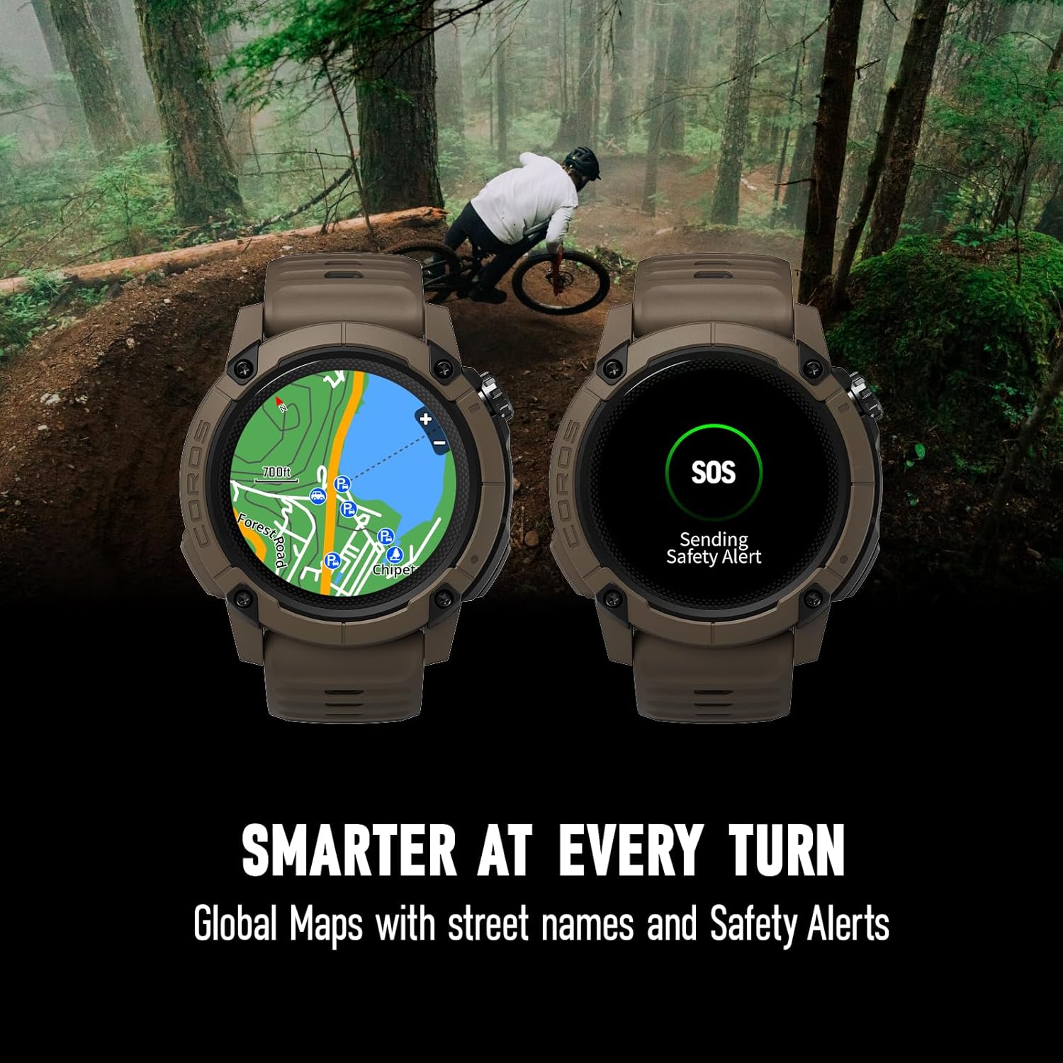 COROS Nomad Outdoor GPS, 1.3" MIP Touchscreen, Global maps with Turn-by-Turn Navigation, 22 Days Battery Life, Microphone Records Voice Notes, Real-time Weather, and Safety alerts (Brown)