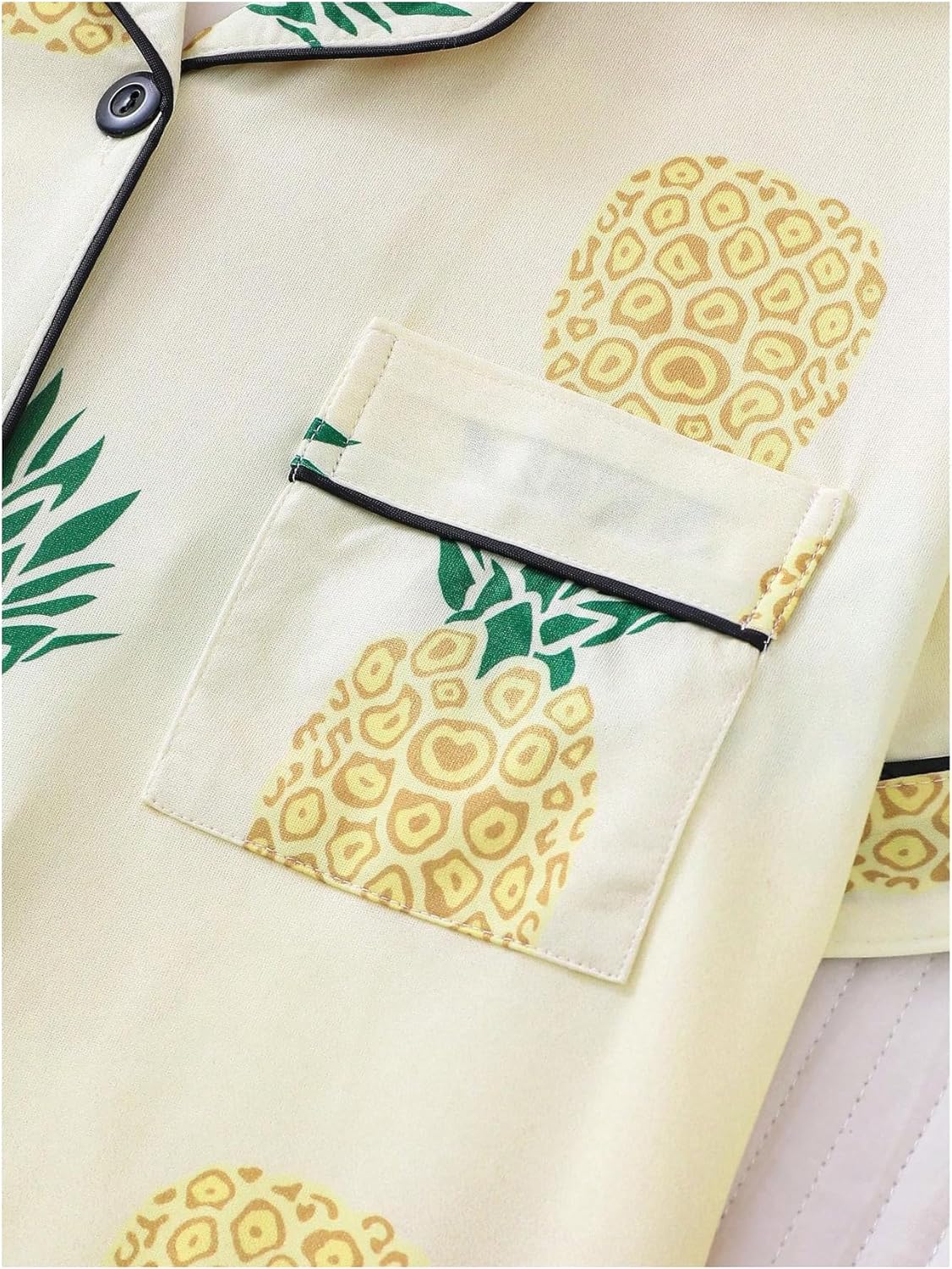 SOLY HUX Women's Short Pajamas Set Cute Printed Button Short Sleeve Shirt with Shorts Sleepwear PJs Set