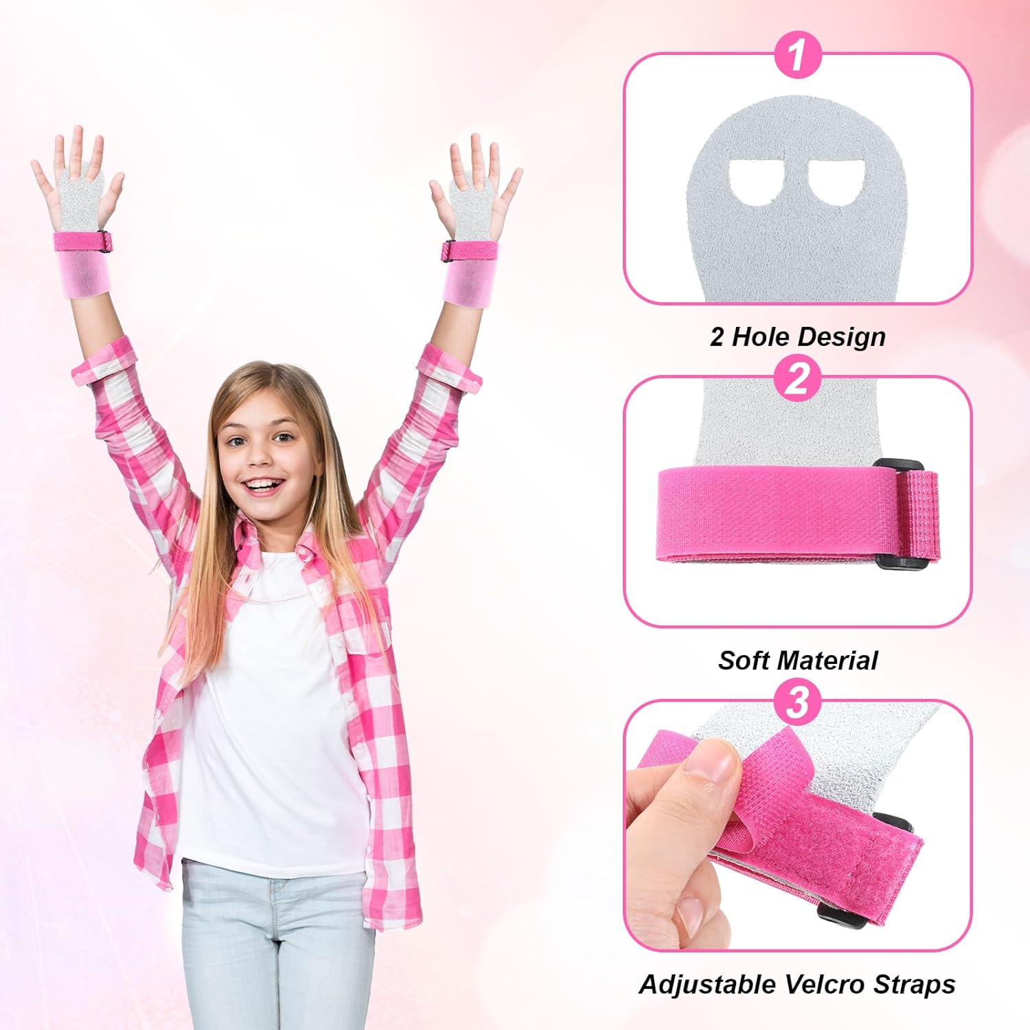 【Wide Application】Kids gymnastics accessories can be used for gymnastics, pull-ups, weightlifting, kettlebells, yoga, dumbbells, double bars, vaulting, and other sports; the good grip of hand grippers keeps hands and wrists dry and prevents blisters or calluses.