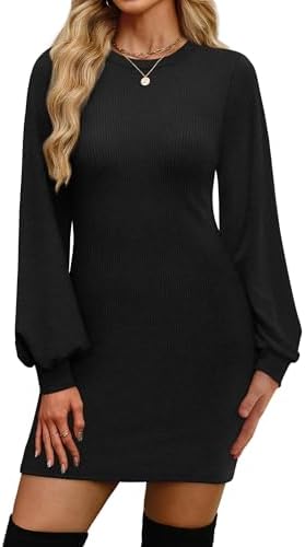 OFEEFAN Sweater Dresses for Women 2025 Fall Winter Puff Long Sleeve Crewneck Bodycon Fleece Ribbed Pullover Fashion Clothing