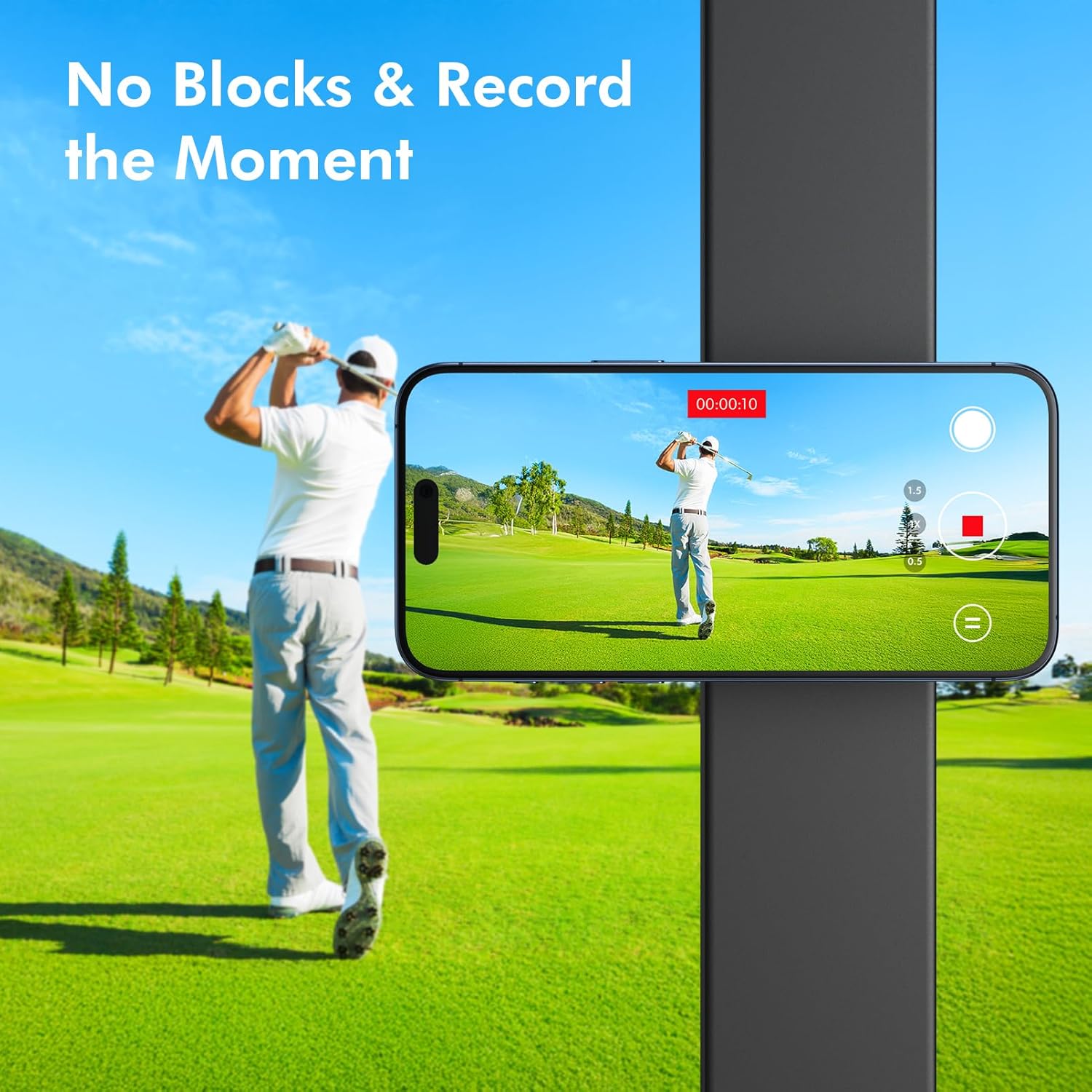 【UNOBSTRUCTED CAMERA & 360° ROTATION】Golf phone holder's open design leaves your phone's camera unobstructed. The 360° rotating sphere allows you to freely adjust the angle to capture your swing and shots from the best possible perspective, easily checking your scores and using your golf GPS app. It's the perfect accessory for your golf cart!