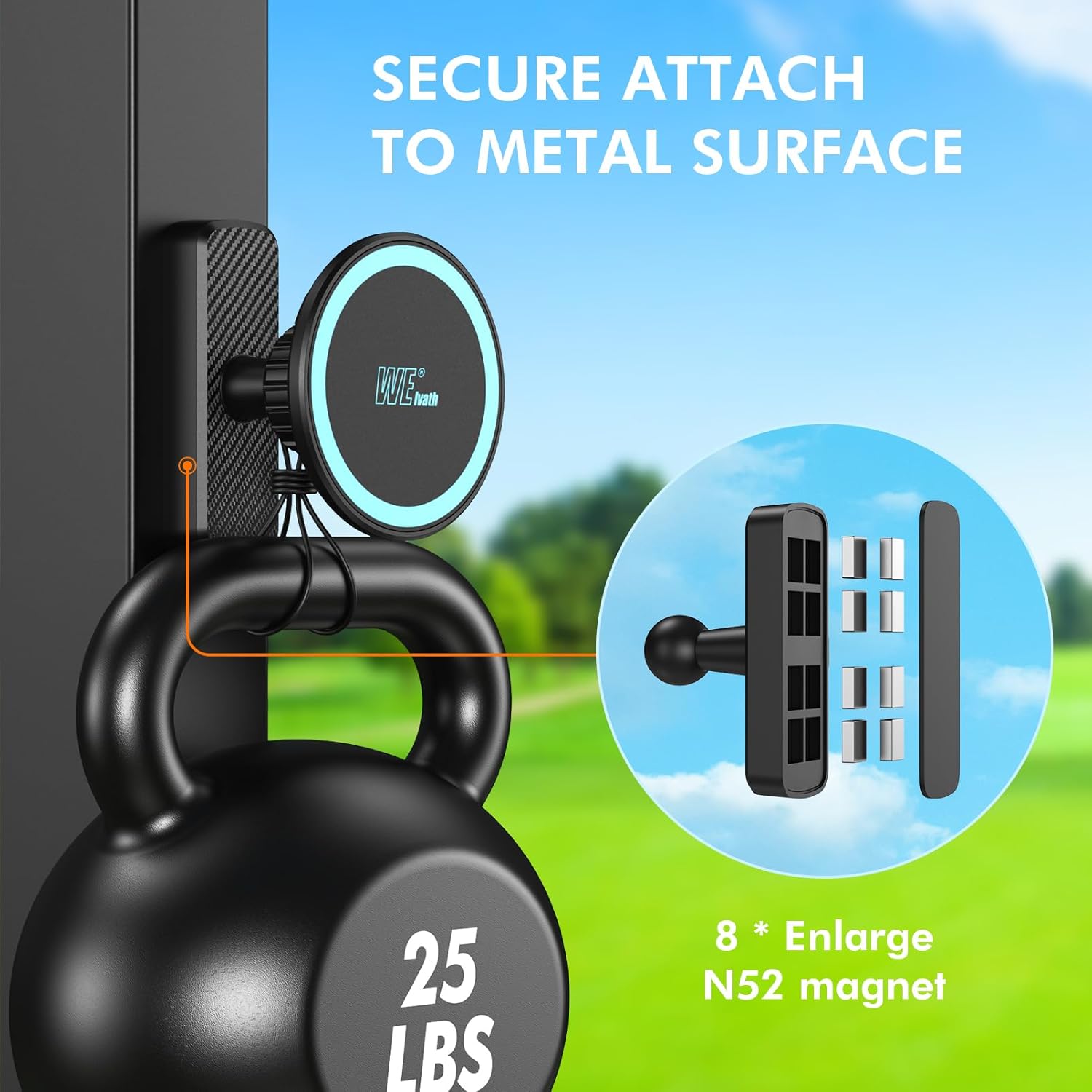 【UPGRADED POWERFUL MAGNETIC SUCTION】Golf cart phone holder features magnetic panel (20 x reinforced N52 magnets) and magnetic base (8 x reinforced N52 magnets). Gravity tests ensure absolute stability, 100% no slipping or shaking.