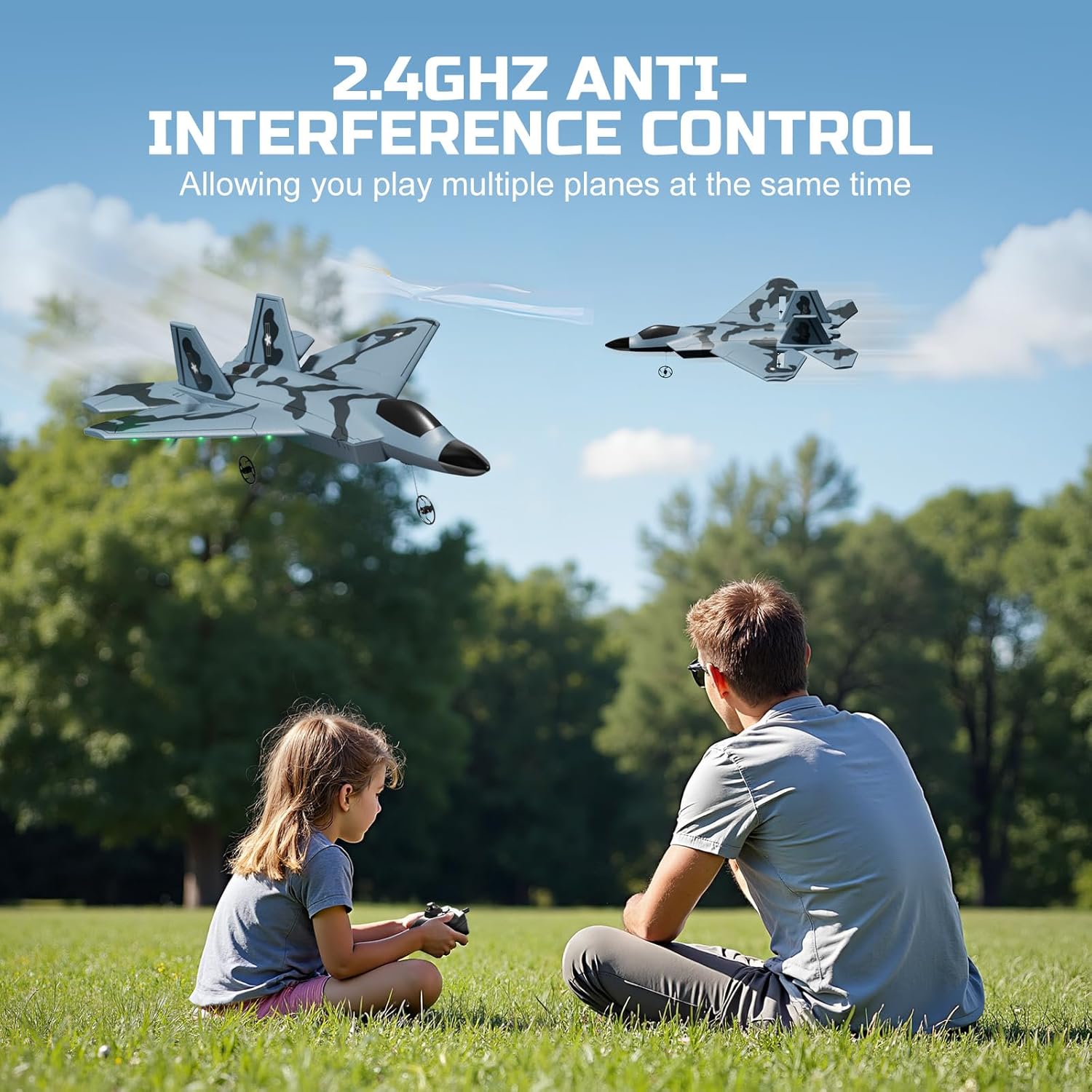 RC Plane, Remote Control Airplane, Drone for Kids and Beginners F-22 Glider Fighter Jet, Ready to Fly 2CH 2.4GHz Flying Toys with LED Lights, 2 Takeoff Modes, Auto Balance, 2 Batteries