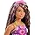 Barbie doll has a curvy body type and wavy brunette hair with purple highlights. A pink knotted headband adds an extra pop of color!