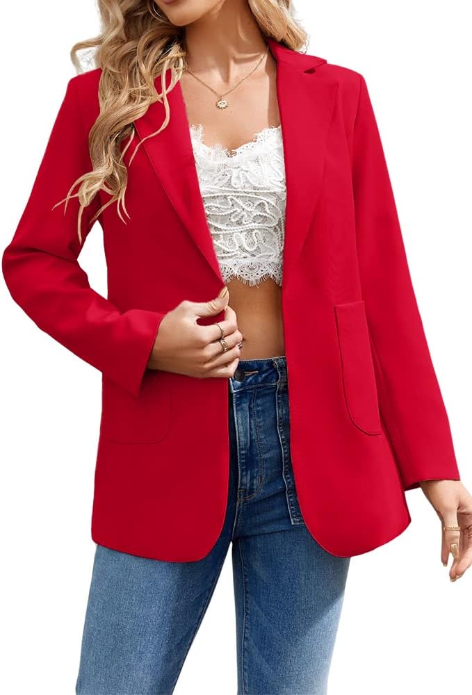 Cnkwei Womens Casual Blazers Open Front Long Sleeve Lapel Collar Work Office Jacket