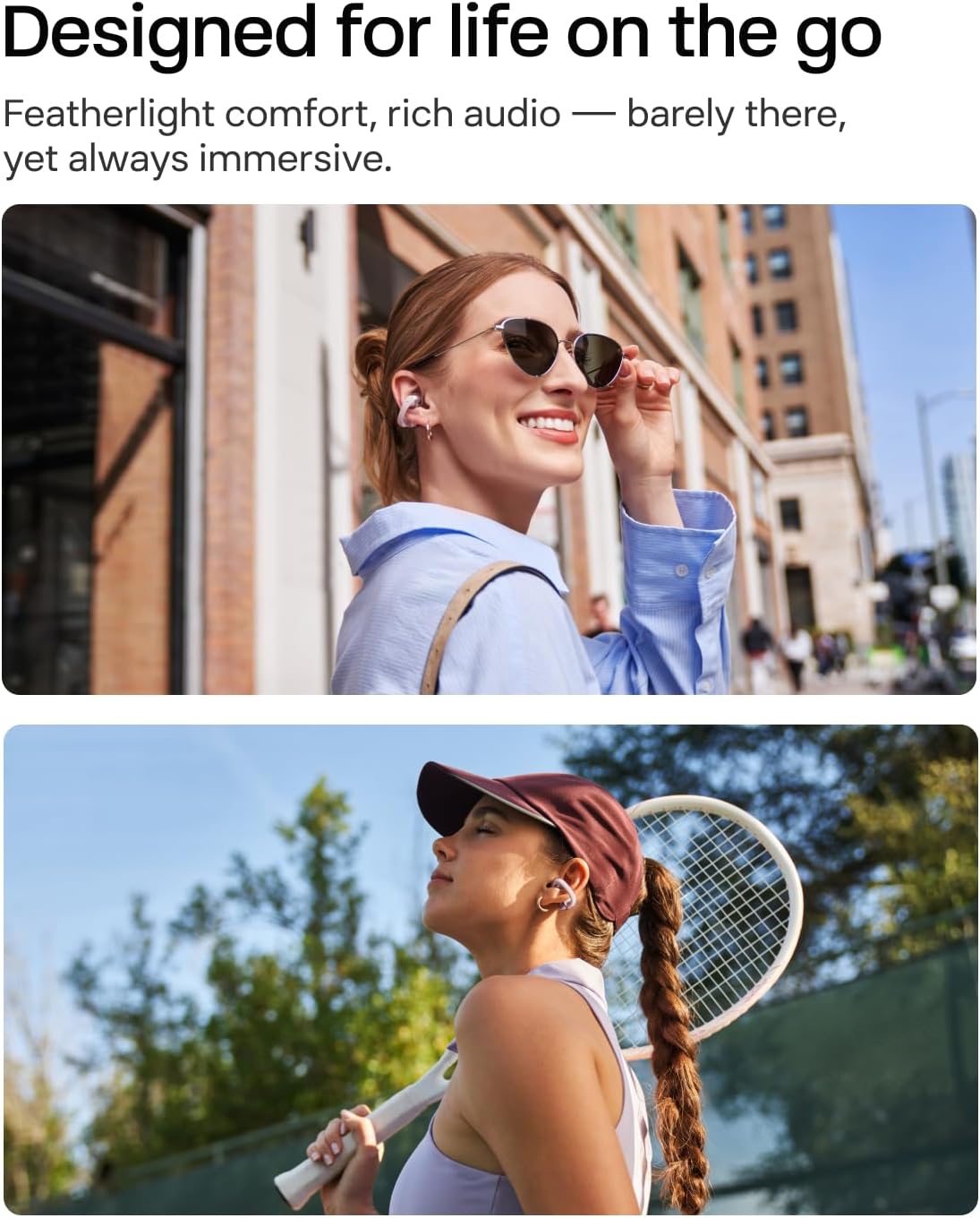 Rich, Open-Ear Audio - Shokz signature open-ear design keeps you connected to the world while you experience the pocket-sized power of OpenDots ONE's premium Dolby Audio and Bassphere Technology.