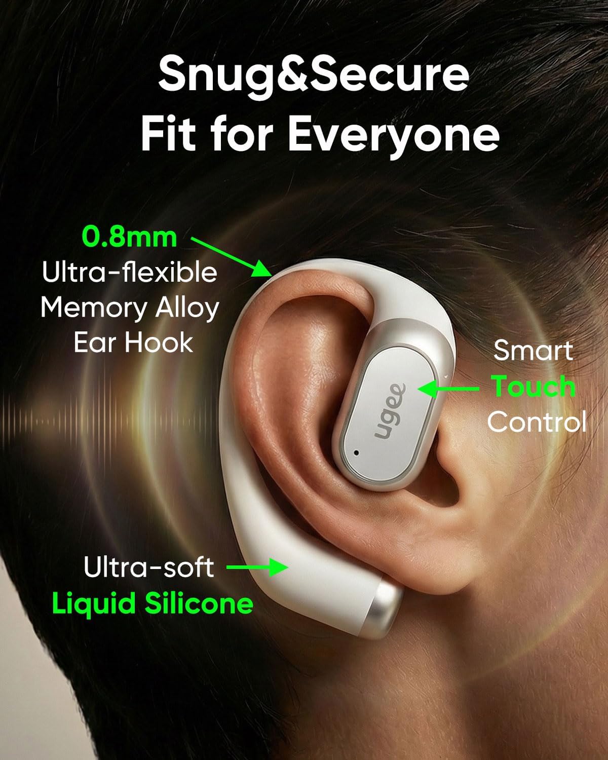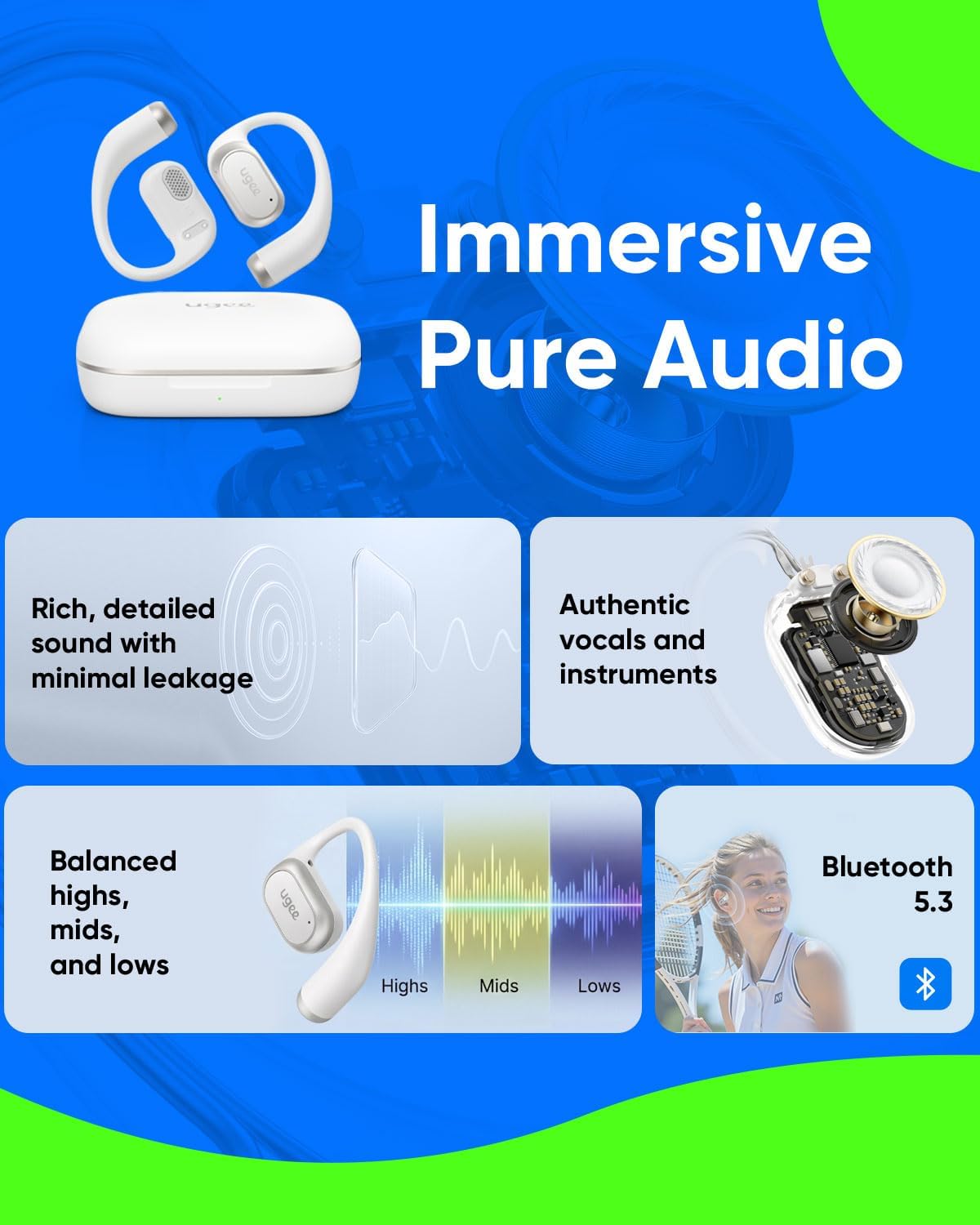 UGEE Inspiration Open Ear Headphones FS01, Bluetooth Headphones 5.3,Wireless Earbuds with IPX5 Waterproof, HiFi Audio for Creators, Music Lovers & Active Lifestyles