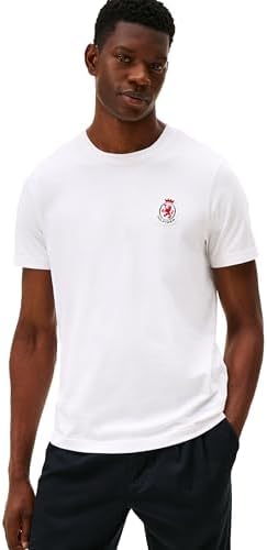 Introducing Tommy Hilfiger's iconic men's t-shirts, featuring rubberized crest design and crafted from 100% cotton for a soft hand feel and comfortable fit. These graphic tees are the epitome of everyday style, perfect for effortlessly elevating your casual look. Durable enough to withstand serious wear, Tommy Hilfiger's graphic t-shirts for men are breathable, crisp, and lightweight, ensuring you stay cool and comfortable every time you slip them on. The special wash process gives these crewneck graphic tees their softness, making them a solid basic option for any wardrobe. Pair them seamlessly with your favorite Tommy Hilfiger shorts, pants, jeans, or jackets for versatile styling options suitable for any occasion, whether it's a casual outing or a formal event. Ideal for daily wear, work, school, events, vacation, or sports, these men's shirts are a wardrobe essential. Treat yourself or surprise a loved one with this timeless piece, perfect for fathers, brothers, boyfriends, husbands, sons, or friends. Elevate your everyday style with the unbeatable quality and sophistication of Tommy Hilfiger's men's t-shirts.