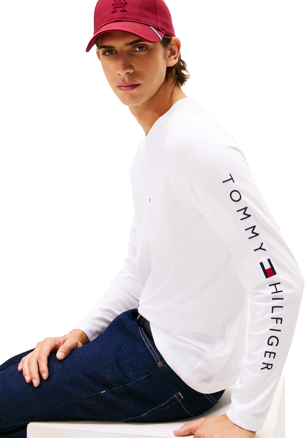 Tommy Hilfiger Men's Long Sleeve Cotton Graphic T-Shirts with Embroidered Logo