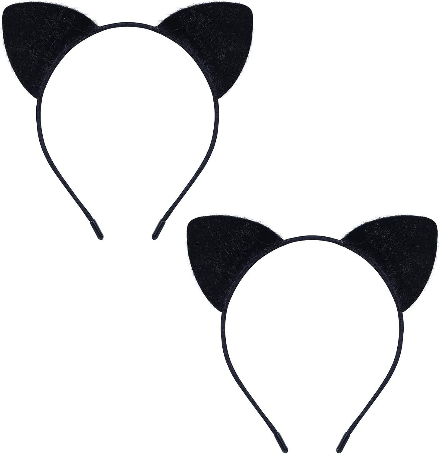2 Pack Furry Cat Ears - Black Cat Ears Headband Cat Woman Costume Accessories Kitty Ear for Women Halloween Dress Up Cosplay