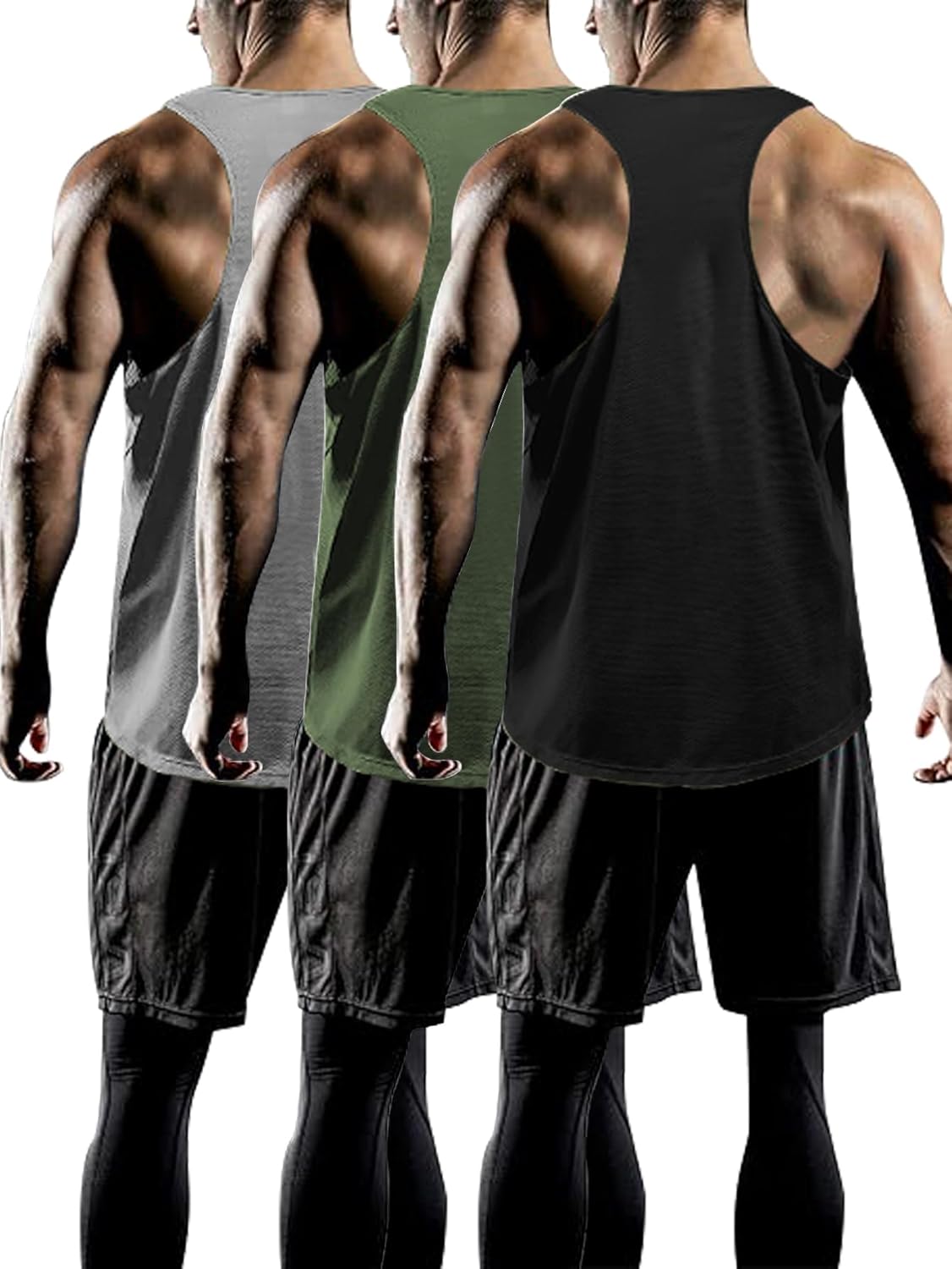 Tank Tops Men Y-Back Muscle 3 Pack Dry Fit Sleeveless Workout Tank Tops for Men Mesh Material Running Gym