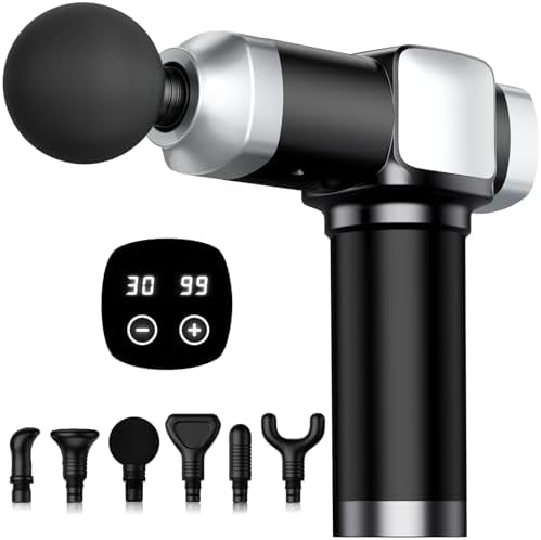 Deep Tissue Massage Gun, Portable Percussion Electric Muscle Massager for Pain Relief, Handheld Massagers with 30 Speeds & 6 Attachments for Back and Neck, Gifts for Men Women