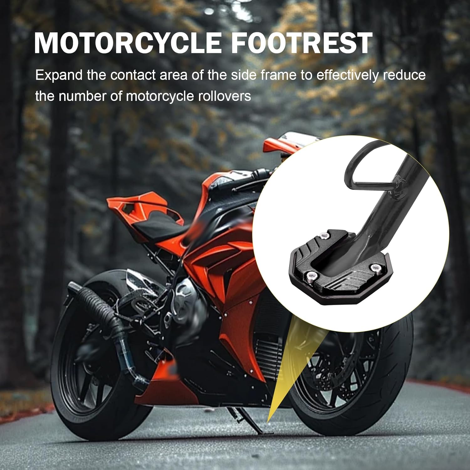 Protection: The motorcycle sidestand support plate serves to expand the contact area of the sidestand, effectively reducing the number of motorcycle rollovers. The stylish appearance adds a touch of sophistication to your motorcycle, making it a sight to behold.