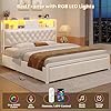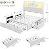Queen Bed Frame with Smart LED Lights: Storage bed features with customizable LED lights, easily control with APP or remote. It supports changing over 60000 colors, static and dynamic modes, mic mode, music mode, timing mode, create a cozy sleep environment with personalized colors and brightness, bring a cute and stylish style for your room.