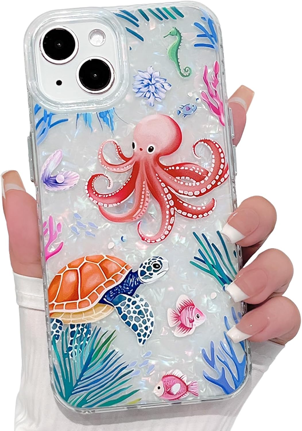 FeatureNote:This phone case is not the most protective case in the world, but if you only need medium protection, it will be a good choice, because it has nice looks and practical features.In order to make the iPhone 13/14 case more slim and softer, the phone case is designed to be level with the screen of the iPhone, and the height is not higher than the screen of the iPhone . But you can use the Screen protection tempered film, which is very helpful to protect the iPhone .Note:Cute ocean animal with shell patterns design on the case makes your phone different and eyes-catching.This case is perfect for everyone who loves marine life pattern design. It's a perfect present Beautiful color, slim design, comfortable grip and stylish looks . Product SpecificationsMaterial:Premium Quality TPU+PC Weight: 30gPackage included:1 * iPhone 13/14 case. Do not have HD Screen protectors .After-sales serviceDear friend, If the case is damaged during use. Please don't be angry or anxious, please feel free to contact us.The best service will be supplied to you all the time. you can contact us via Amazon message .Steps: First of all, click to enter our store.Then find us in "Have a question for Lovmooful? Ask a question", click "Write message" and contact us by email. Thank you for visiting or ordering from us. Your satisfaction is our greatest motivation.