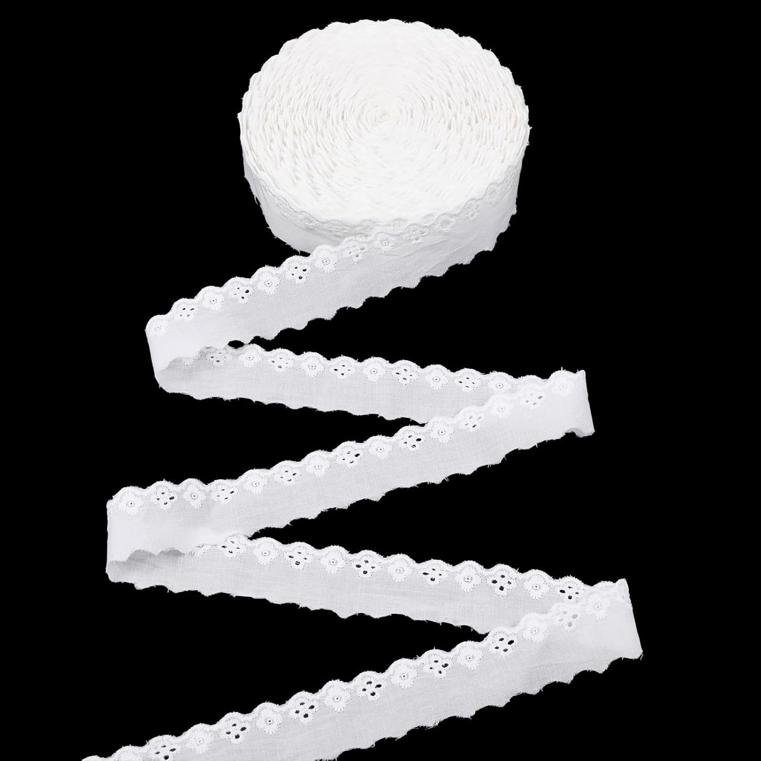 16 Yards White Lace Ribbon, Cotton Eyelet Lace Trim Wavy Edge Floral Embroidery Laces Trim for Sewing Dress Clothes Bag Dolls Pets Clothes