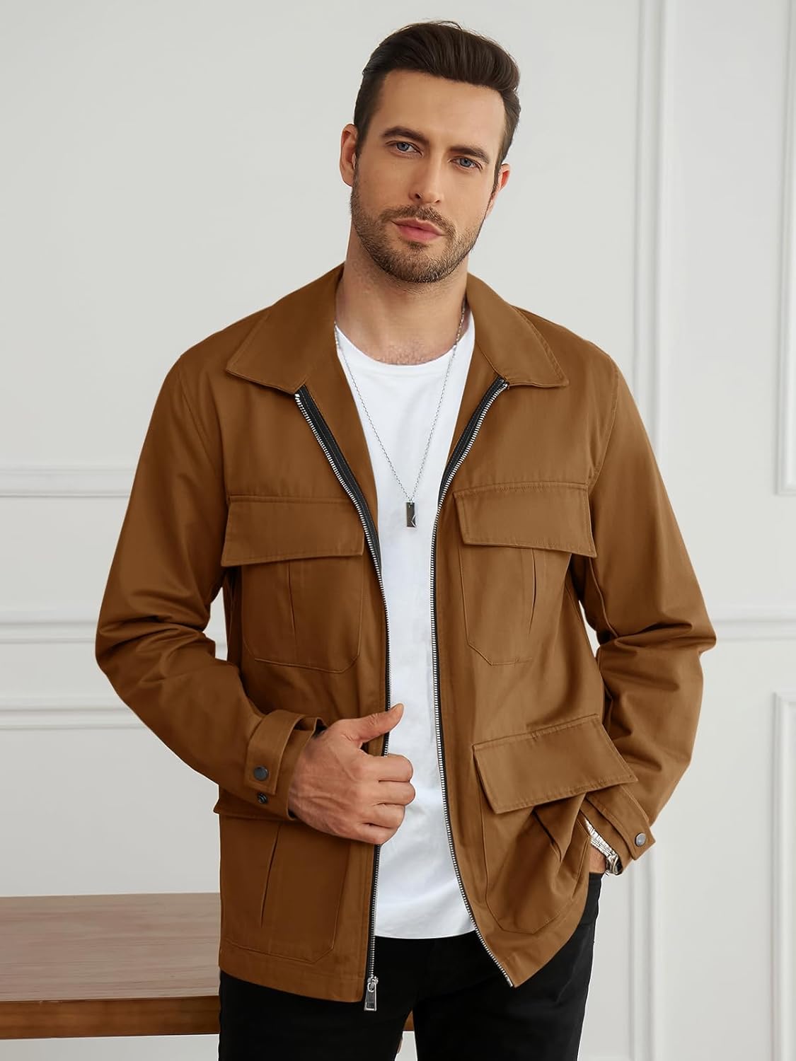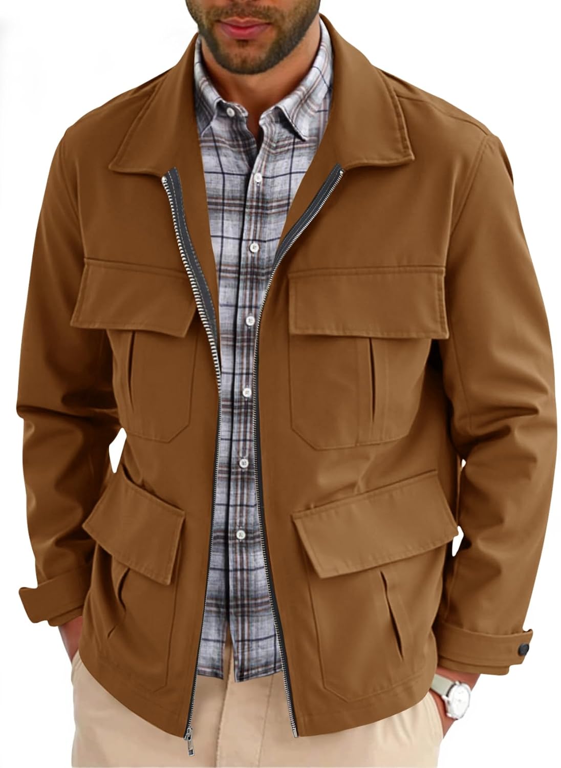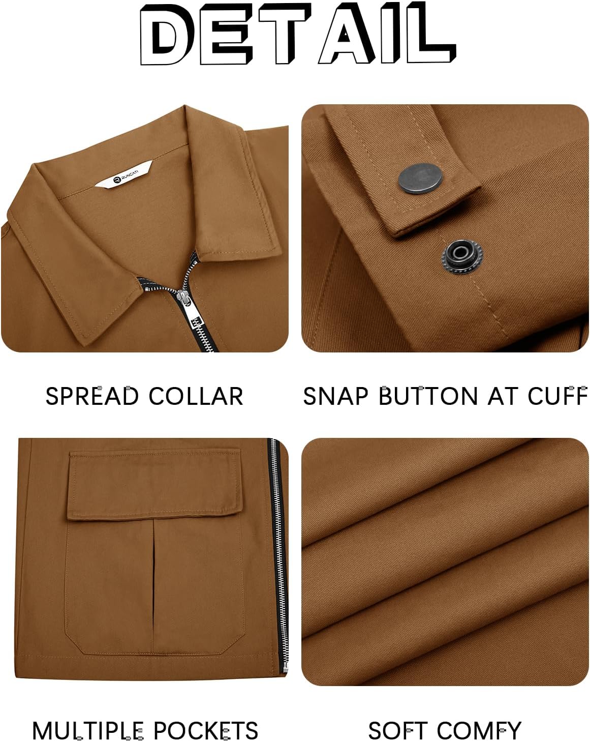 Runcati Mens Safari Jacket Military Full Zip Cargo Jacket Windproof Multi Pocket Outdoor Field Coat