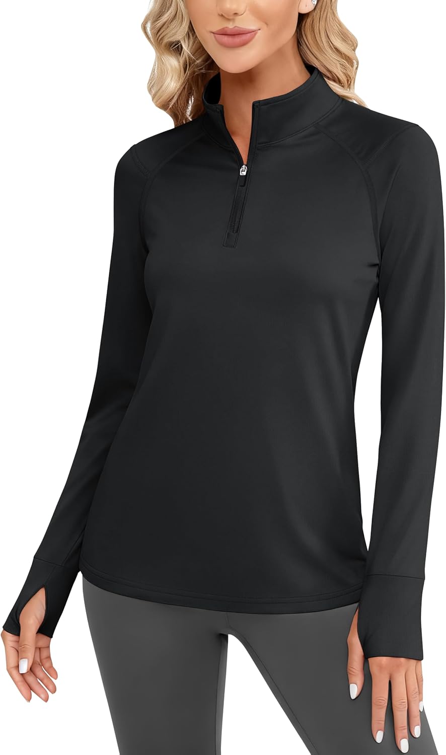 Cavva Women's Fleece Quarter Zip Pullover Running Shirt Thermal Long Sleeve Tee Athletic Workout Tops Thumb Hole