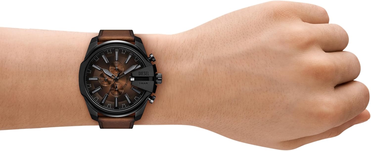 Diesel Men's Mega Chief Slim Chronograph Brown Leather Watch (Model: DZ4692)