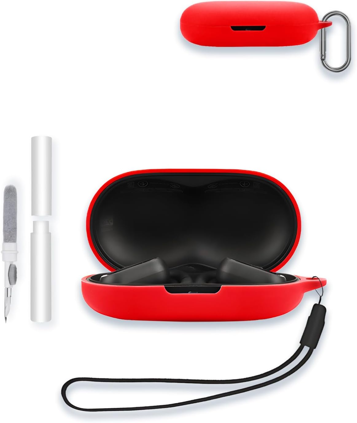 Case for 1MORE Fit SE S30 Open Ear Headphones, WUNIAK Soft Silicone Protective Portable Scratch Shock Resistant Shell with Cleaner Kit & Carabiner & Lanyard,Red