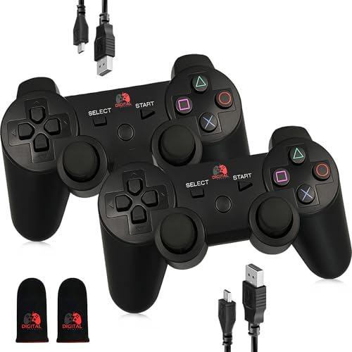 Digital Dynasty 2 Pack Controller for PS3 - Wireless PC Controller for Sony Playstation 3 - Double Shock 3, Bluetooth, Rechargeable, Remote for PS3 - Including 2 USB Cables (Black)