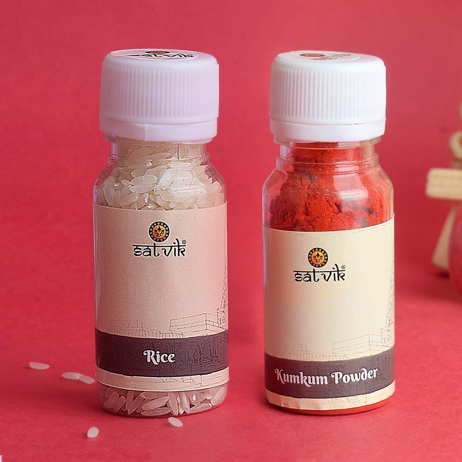 Enhance your traditional rituals with the SATVIK Red Roli with Chawal, a premium Pooja Samagri set specially curated for Indian ceremonies. This essential set is perfect for various auspicious occasions such as Mandir Pujan, Bhaiya Dooj, Rakshabandhan, and weddings. Celebrate and honor your traditions with the SATVIK Red Roli with Chawal. Perfect for a variety of Indian rituals, this premium Pooja Samagri set is designed to enhance the spiritual experience of your ceremonies. Embrace the purity and authenticity of SATVIK for all your ritualistic needs.