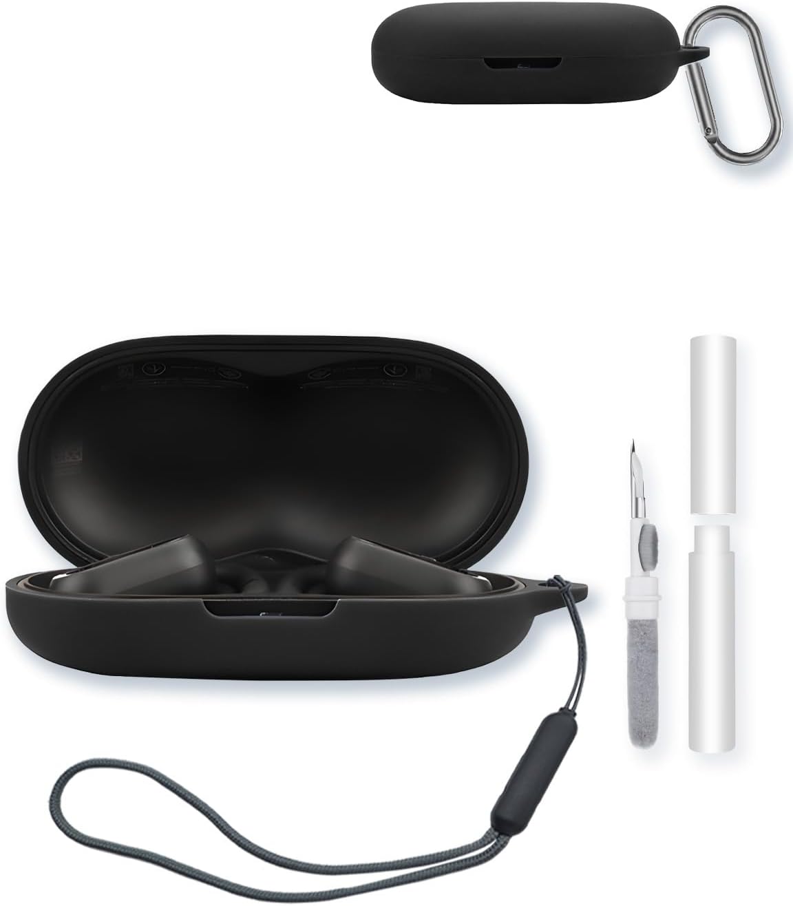 Case for 1MORE Fit SE S30 Open Ear Headphones,Soft Protective,BOVUGAC Silicone Case Cover with Keychain & Cleaning Kit & Lanyard for 1MORE Fit SE S30-Black