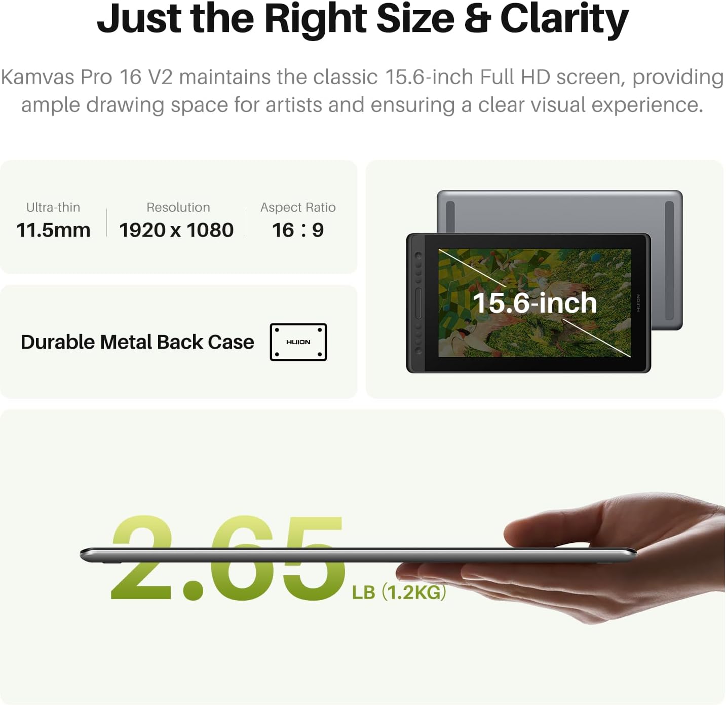 Important Note: The Kamvas Pro 16 V2 is a pen display, not a standalone tablet. Requires connection to a computer or laptop.