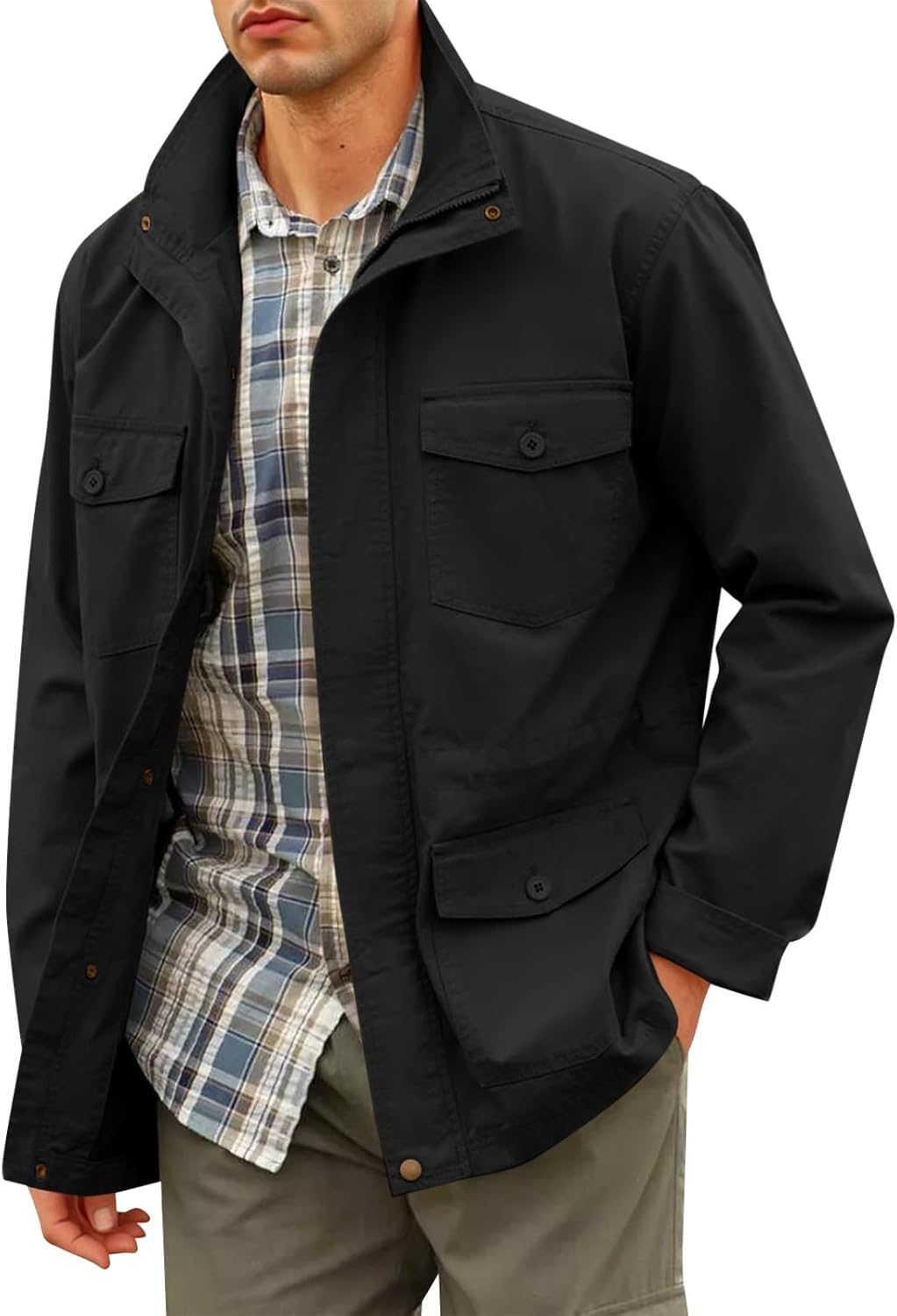 Runcati Mens Military Jacket Full Zip and Button Safari Field Jacket Multi Pocket Cargo Outdoor Coat