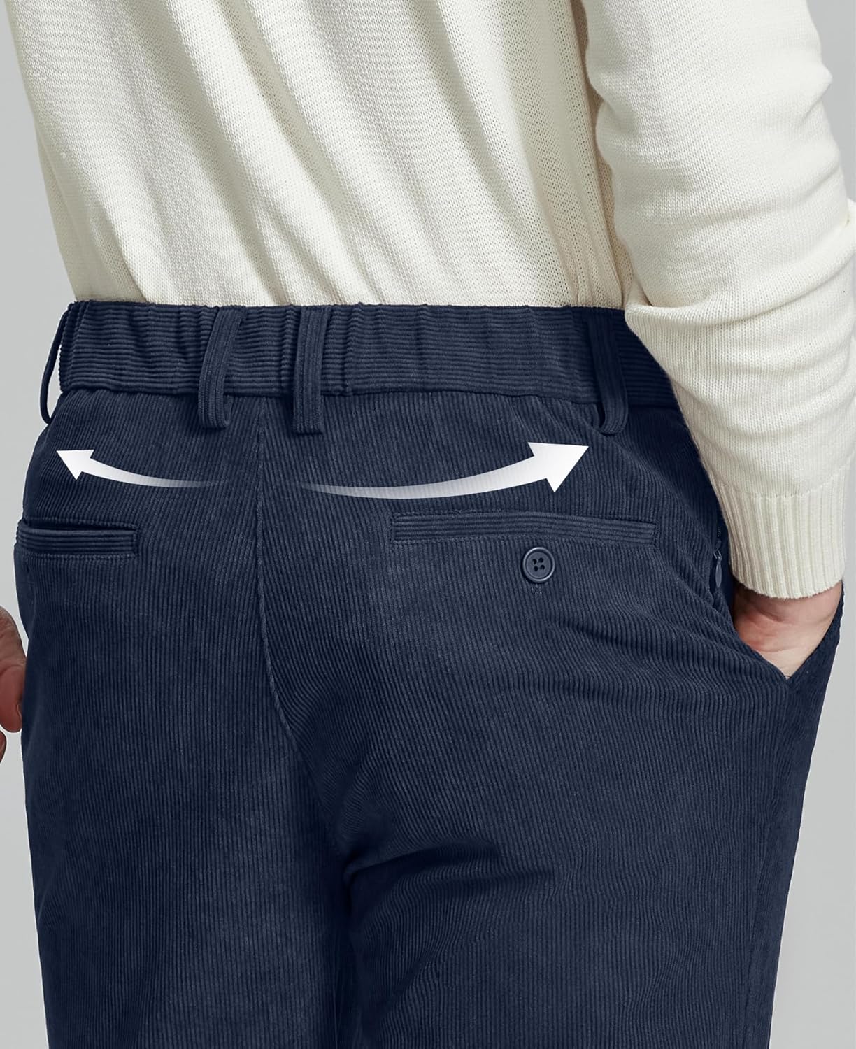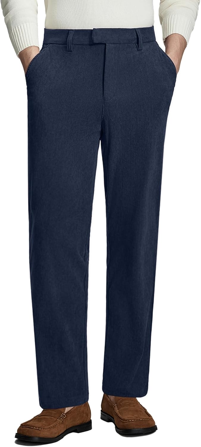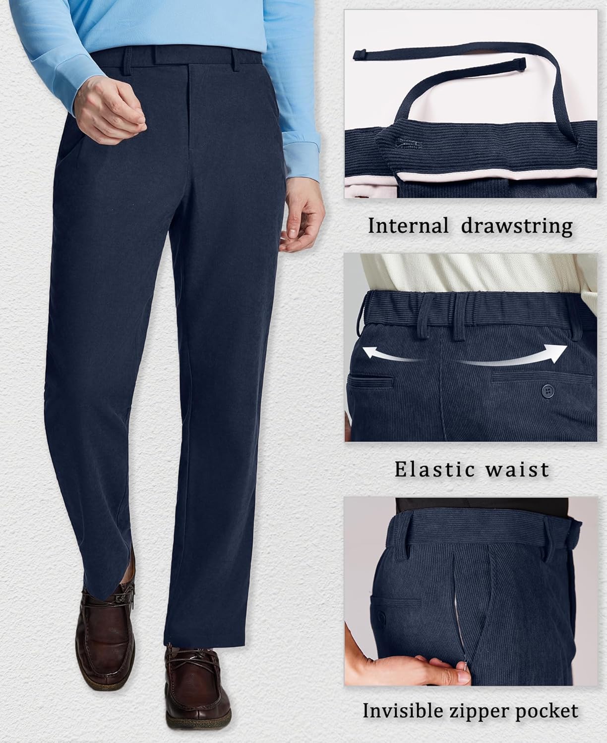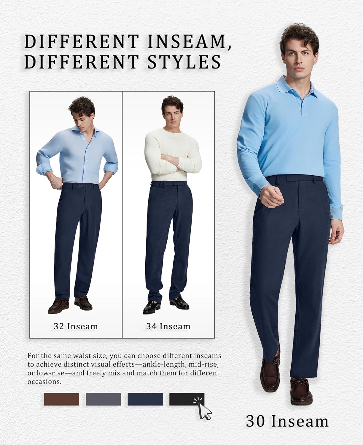 Susclude Mens Corduroy Dress Pants Classic Fit Pants 30"/32"/34" Old Money Vintage Stretch Work Casual Business Trousers
