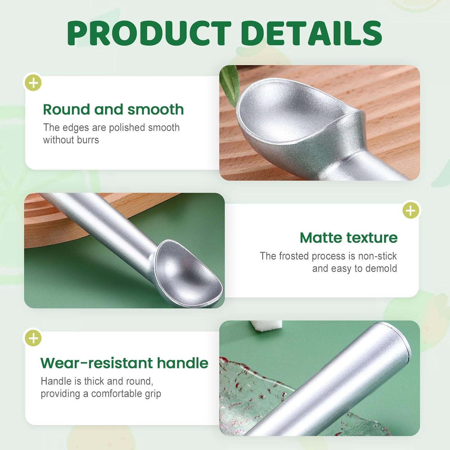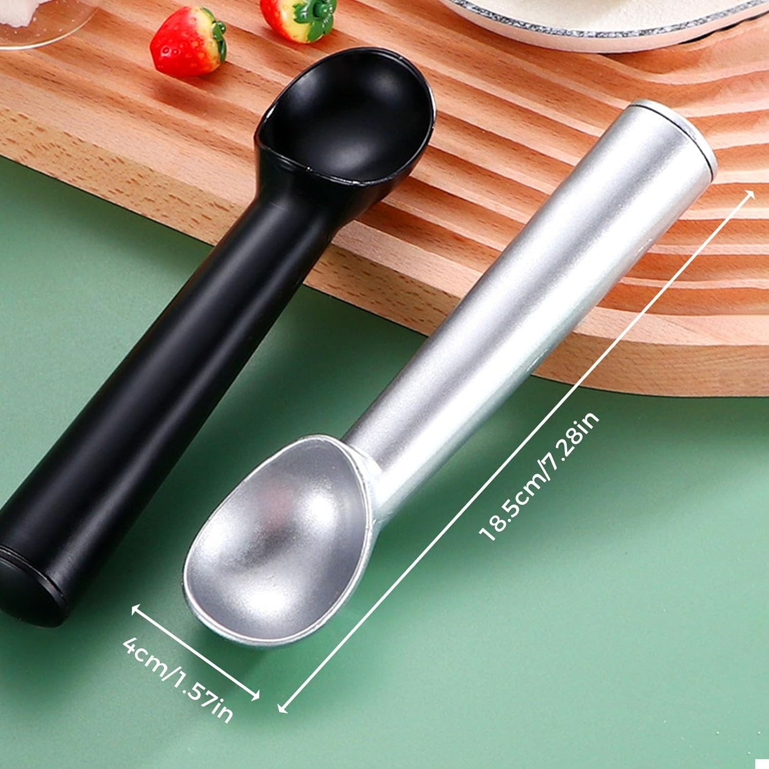 ICE CREAM SCOOPS: Constructed with a single piece of aluminum, this ice cream scooper offers durability and stability, ensuring long-lasting performance without deformation. The solid metal ice cream spoon design is crafted to handle dense, hard ice cream effortlessly