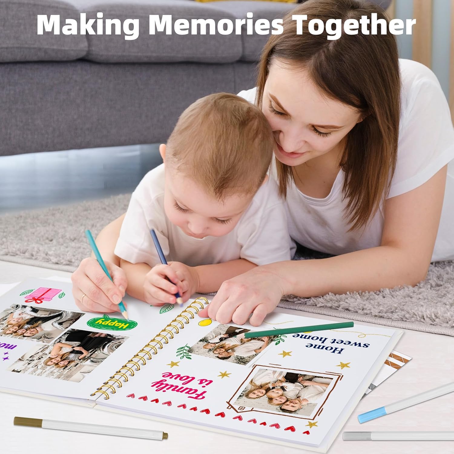360° Open Design for Easy DIY: The spiral-bound album opens flat and rotates 360°, making it easier to decorate, write, or paste. Whether you're journaling, collaging, or crafting, this DIY scrapbook gives you full creative freedom