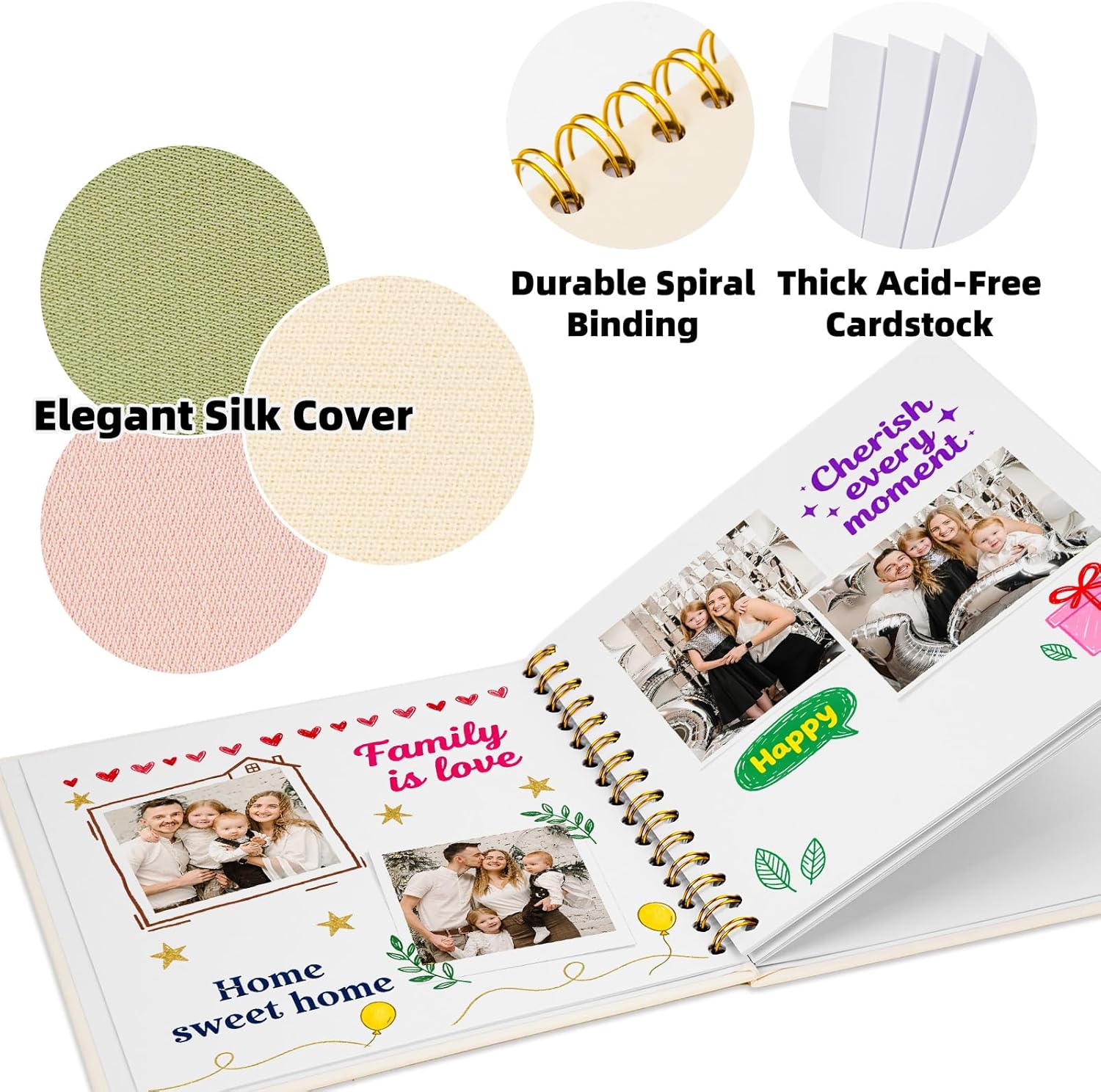 Elegant Silk Cover with Customizable Window: The scrapbook features a durable silk cloth cover with a vintage look and soft texture. A window on the cover lets you personalize the front – insert your favorite photo to make the album truly your own