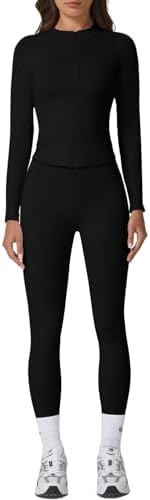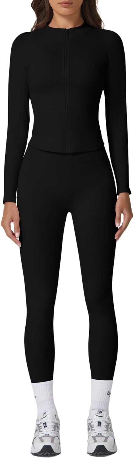 QINSEN Two Piece Workout Sets For Women Long Sleeve Athletic Jacket Matching High Waist Booty Lifting Pants Yoga Gym Outfits