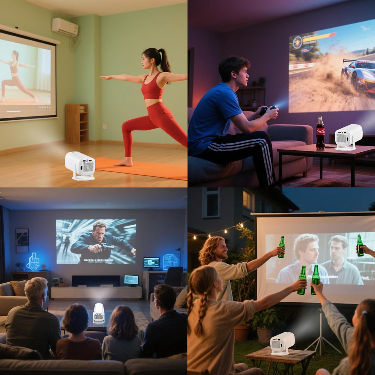Full Hd Projector: Our projector has a brightness of 200 Ansi lumen, and with 4k resolution. Even in strong daylight, there is no need to deliberately create a dark scene, and you can start an immersive visual feast at any time