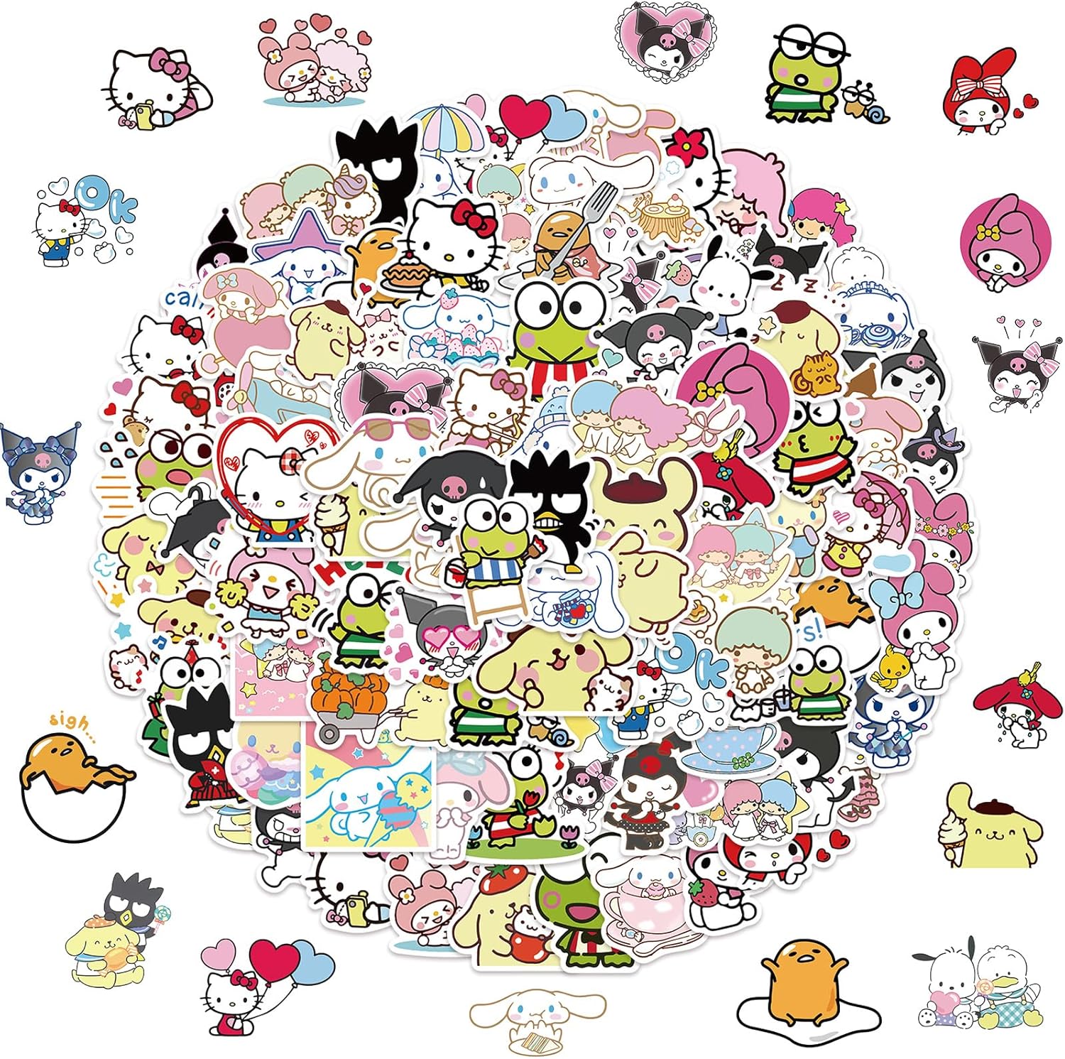 100pcs Sanrio Cartoon Stickers, Kawaii Hello Kitty Kuromi Mymelody Waterproof Vinyl Decal for Teen Kids Girl Adult Laptop, Travel Case, Phone, Bike, Water Bottle, Guitar, Computer, Skateboard