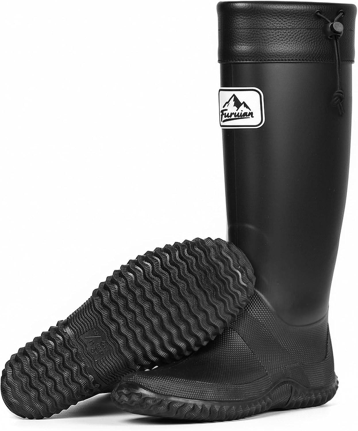 Furuian Rain Boots Women Tall Packable Garden Boots Waterproof Boots for Women Lightweight Rubber Boots Flat Mud Boots